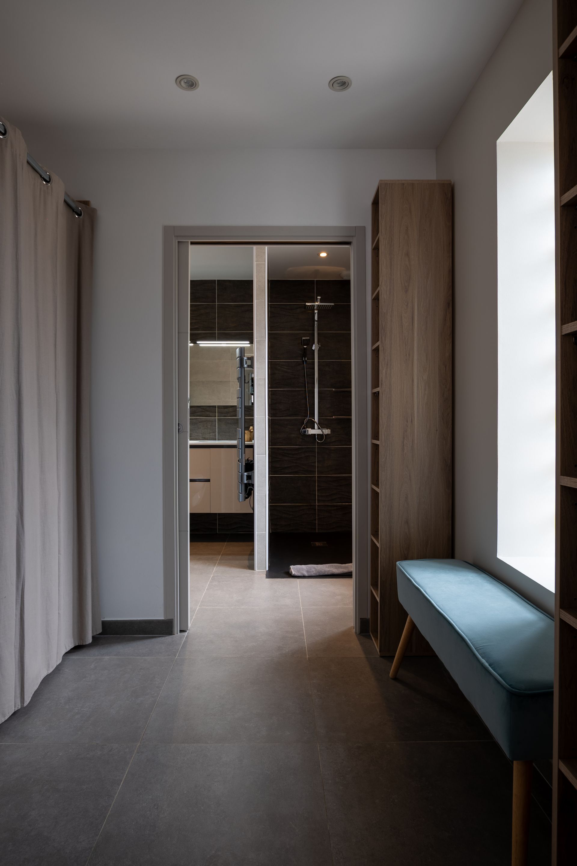 Lit queen-size, dressing avec coffre-fort, salle de bain avec douche italienne, lavabo, sèche-serviette chauffant, sèche-cheveux et toilettes.