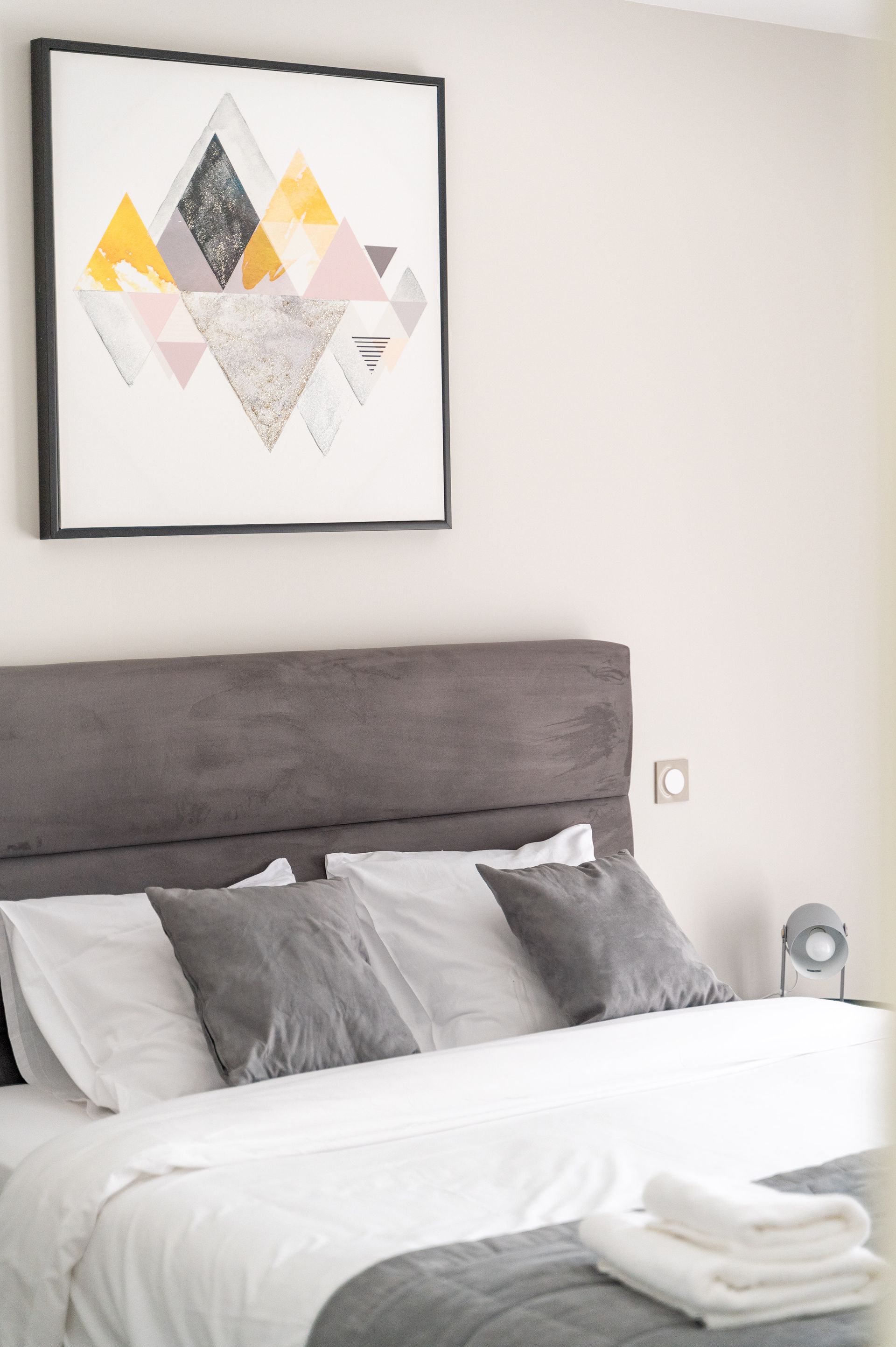 La décoration, aux lignes épurées, naturelles et élégantes, joue avec les couleurs, toujours pastel et douces.